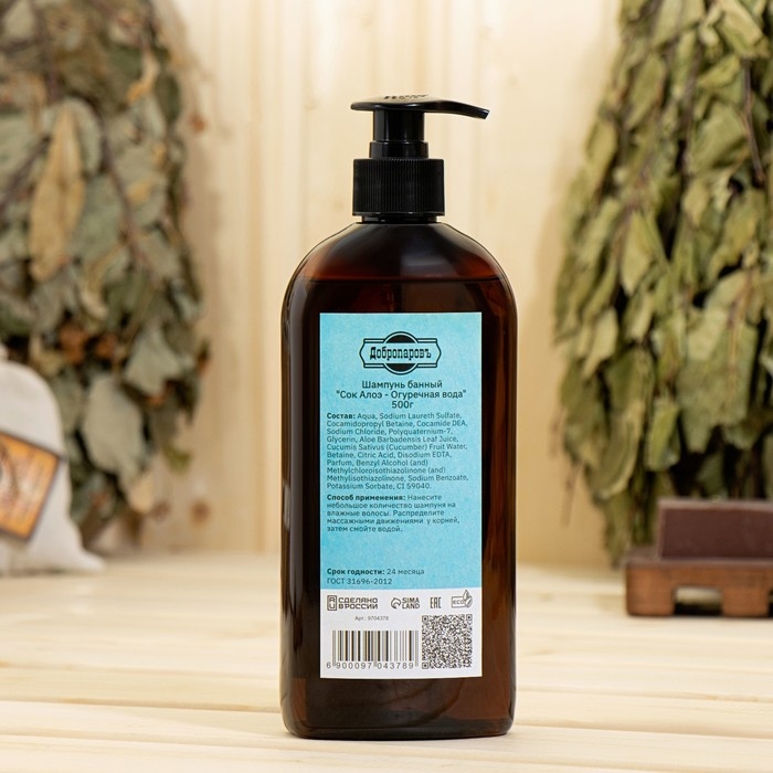 Шампунь для волос банный "Сок Алоэ - Огуречная Вода" 500 мл с дозатором