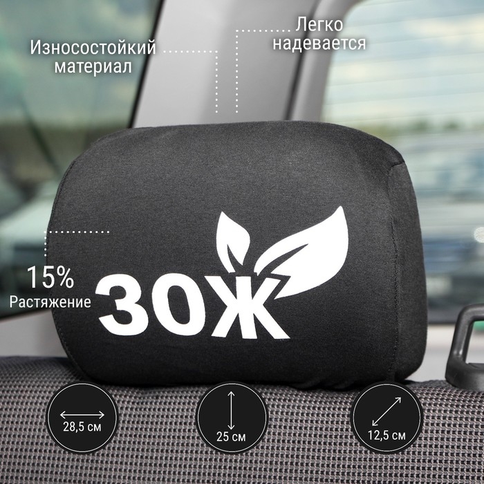 Чехлы на подголовник ЗОЖ, черные, набор 2 шт