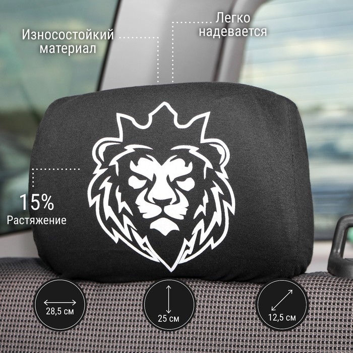 Чехлы на подголовник Лев, черные, набор 2 шт