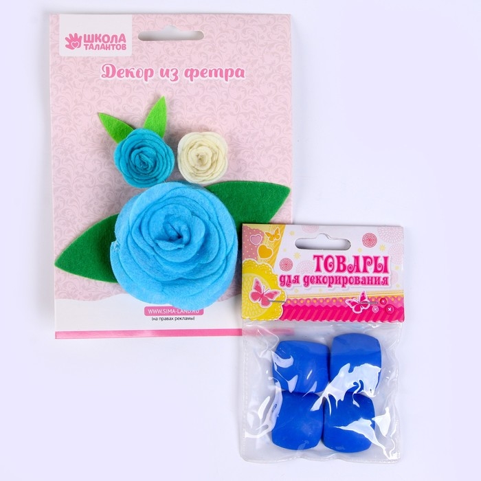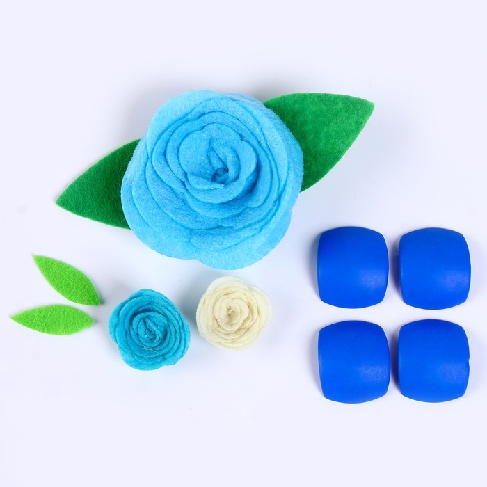 Набор из фетровых цветов с пластиковыми бусинами — это фигурный декор, который можно применить в различных сферах творчества.