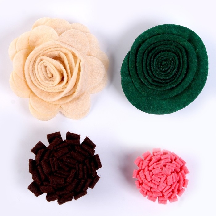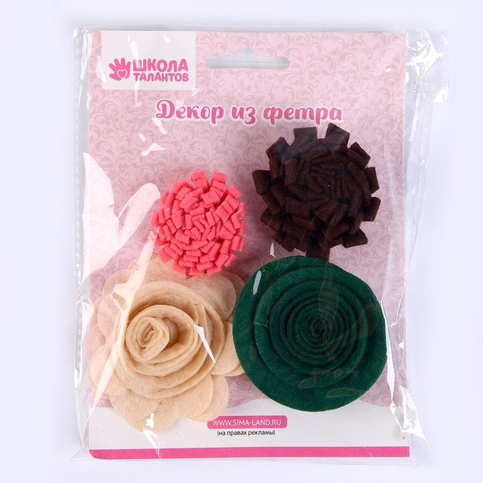 Набор из фетровых цветов с пластиковыми бусинами — это фигурный декор, который можно применить в различных сферах творчества.