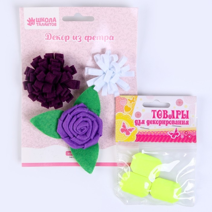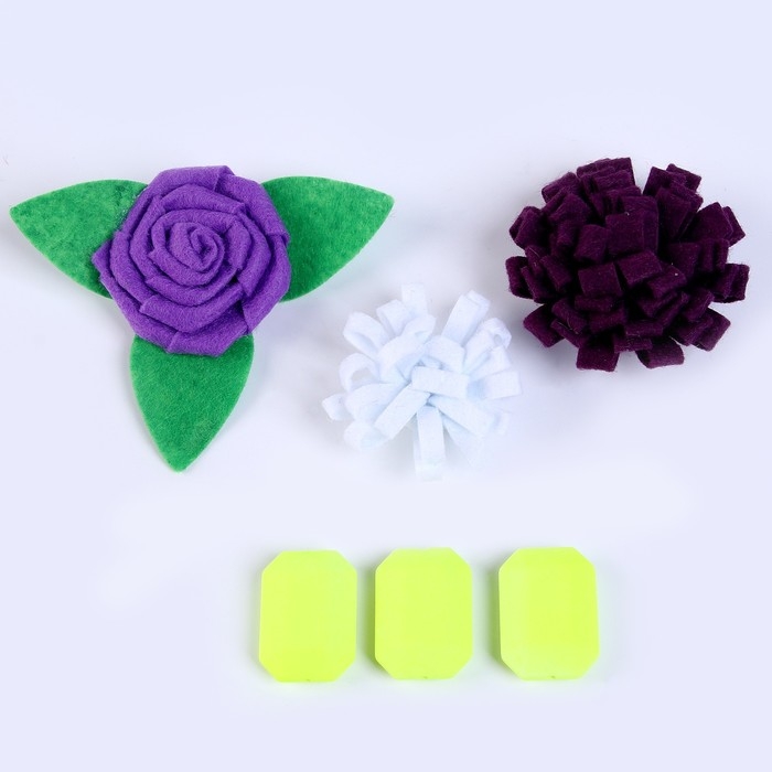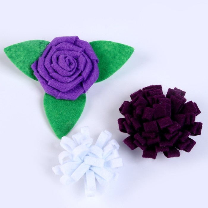 Набор из фетровых цветов с пластиковыми бусинами — это фигурный декор, который можно применить в различных сферах творчества.