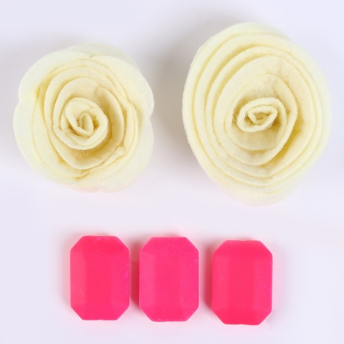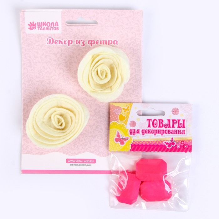 Набор из фетровых цветов с пластиковыми бусинами — это фигурный декор, который можно применить в различных сферах творчества.