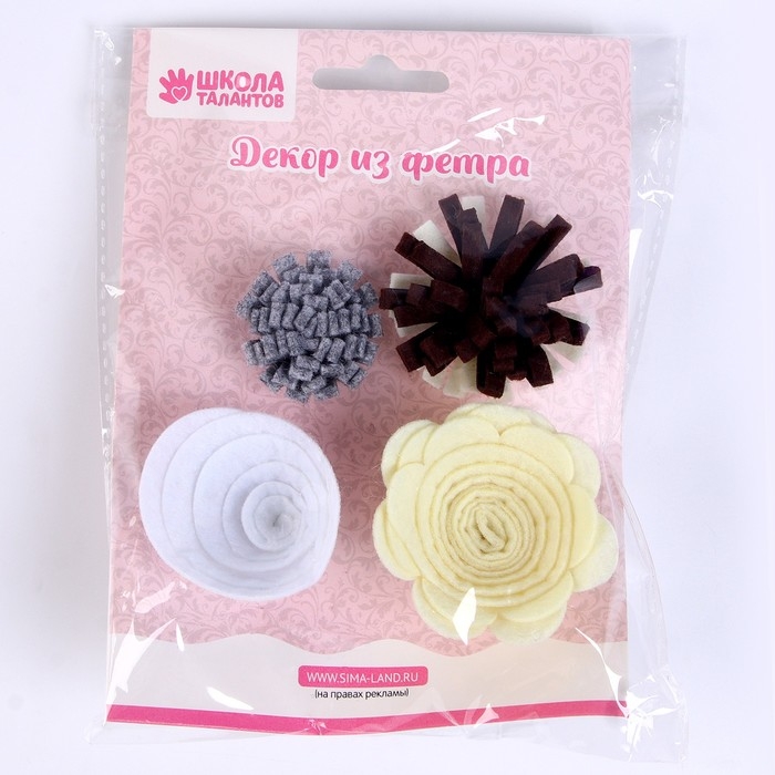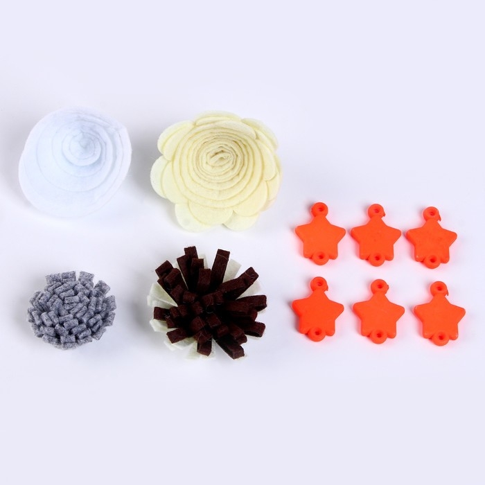 Набор из фетровых цветов с пластиковыми бусинами — это фигурный декор, который можно применить в различных сферах творчества.