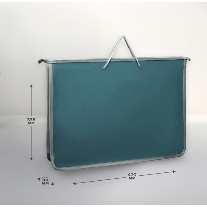 Папка для чертежей и рисунков А3, 470 х 335 х 55 мм, с ручками, пластиковая, молния сверху, "Офис"