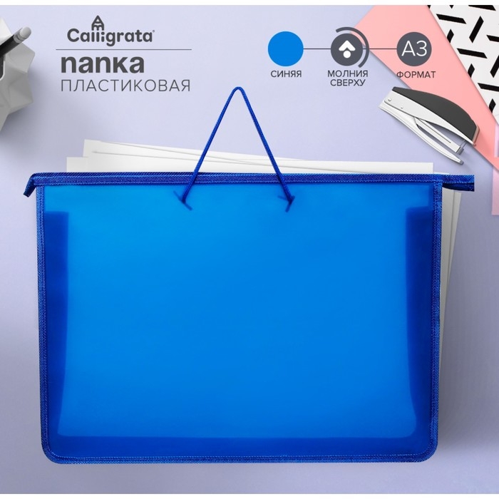 Папка для чертежей и рисунков А3, 470 х 335 х 55 мм, с ручками, пластиковая, молния сверху, "Офис"