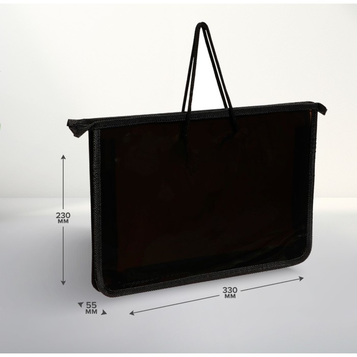 Папка с ручками А4, 330 х 230 х 55 мм, молния сверху, пластиковая, "Офис"