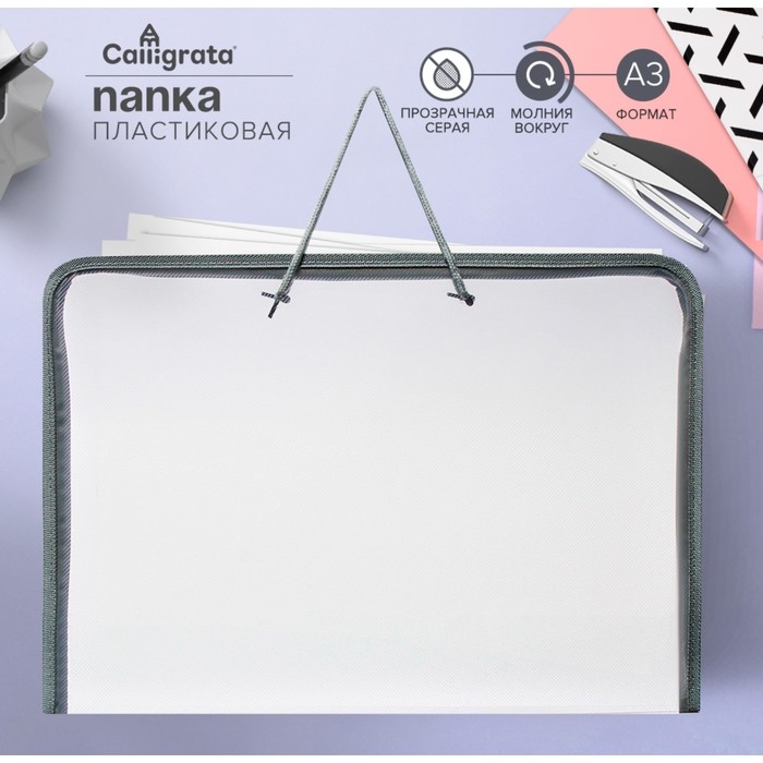 Папка для чертежей и рисунков А3, 460 х 320 х 25 мм, с ручками, пластиковая, молния вокруг, "Офис"