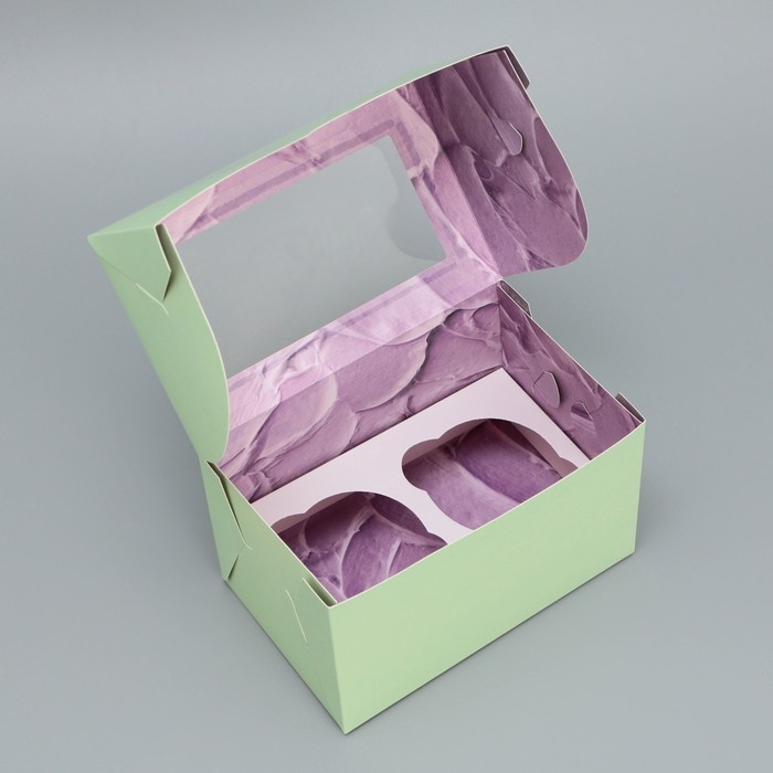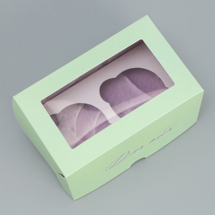 Коробка для капкейков, кондитерская упаковка двухсторонняя, 2 ячейки, «Для тебя», 16 х 10 х 10 см
