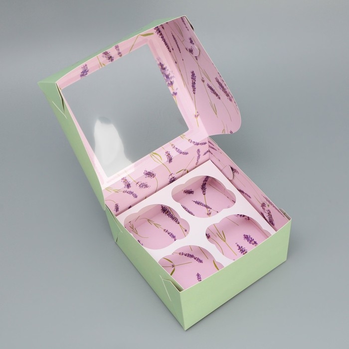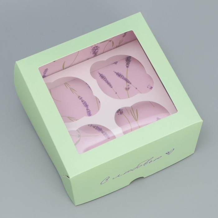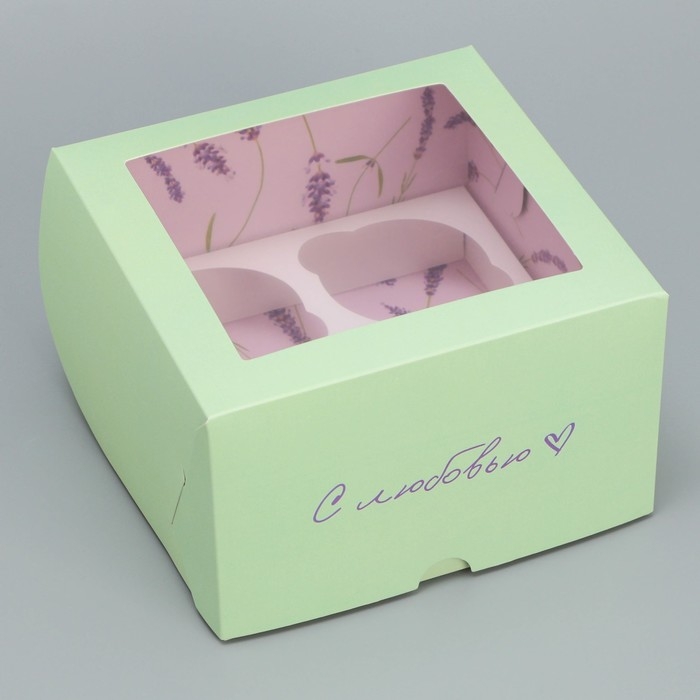 Коробка для капкейков, кондитерская упаковка двухсторонняя, 4 ячейки «С любовью», 16 х 16 х 10 см