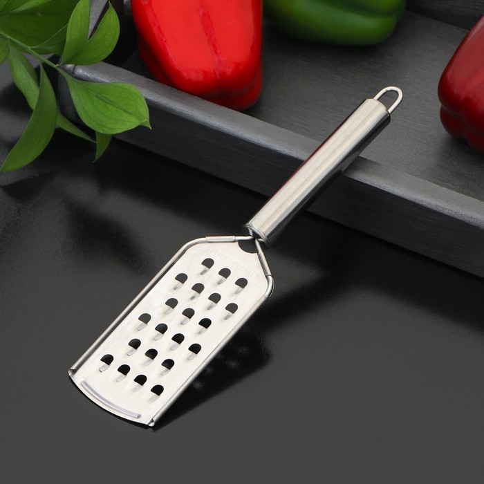 Тёрка для сыра с ручкой Доляна «Металлик», 23×6 см, крупная, цвет серебристый