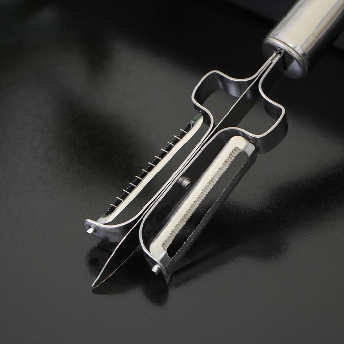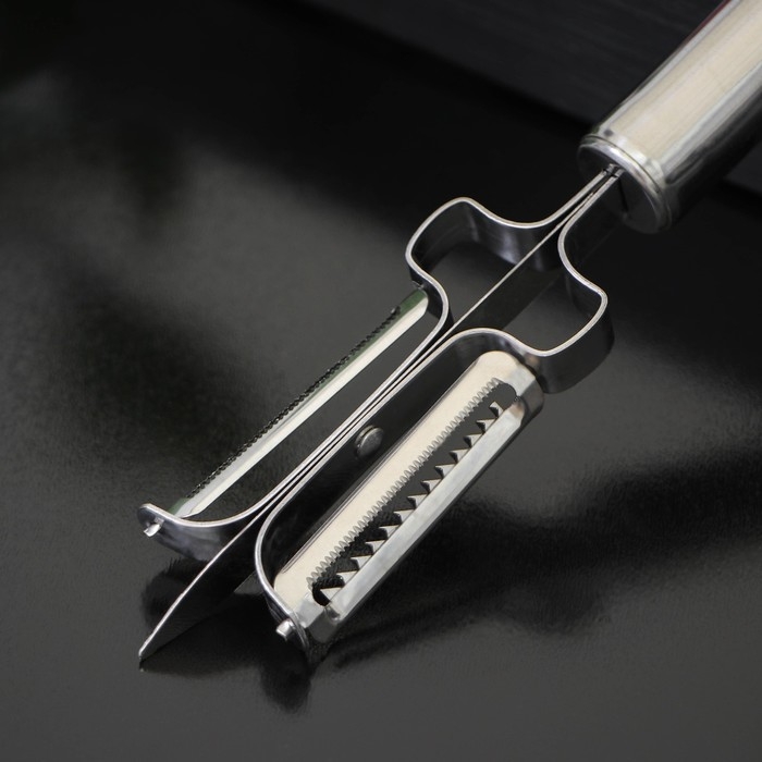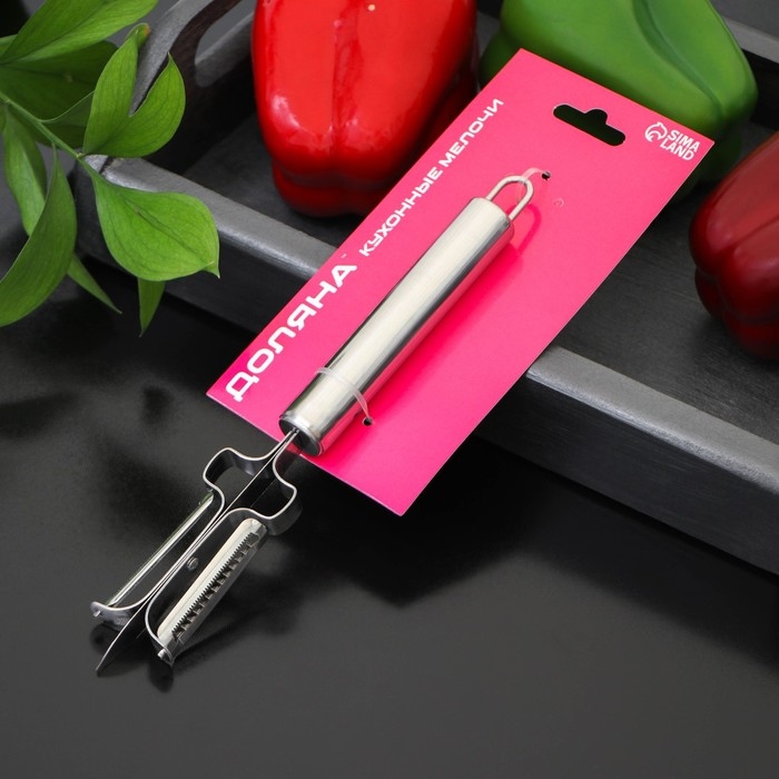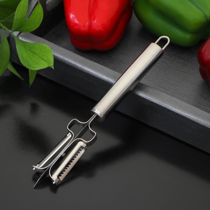Овощечистка Доляна «Металлик», двухсторонняя, 20,5 см, цвет серебристый