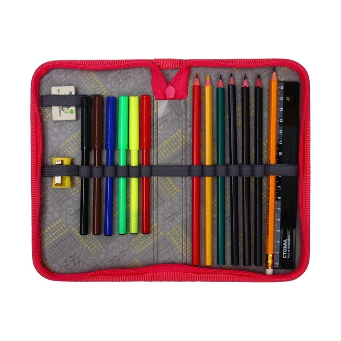 Пенал 1 секция, 115 х 205 мм, с наполнением 16 предметов, Calligrata "Зайка" ламинированный картон, 30П26/set