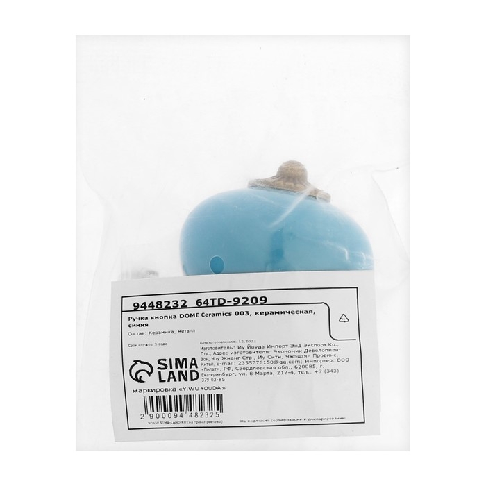 Ручка кнопка DOME Ceramics 003, керамическая, синяя