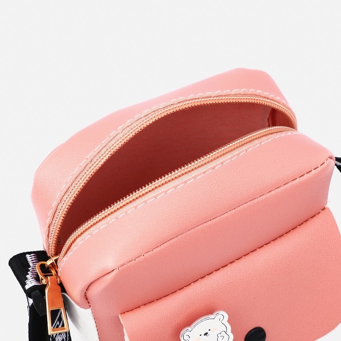 Сумка детская для девочки на длинном ремне, наружный карман, цвет розовый