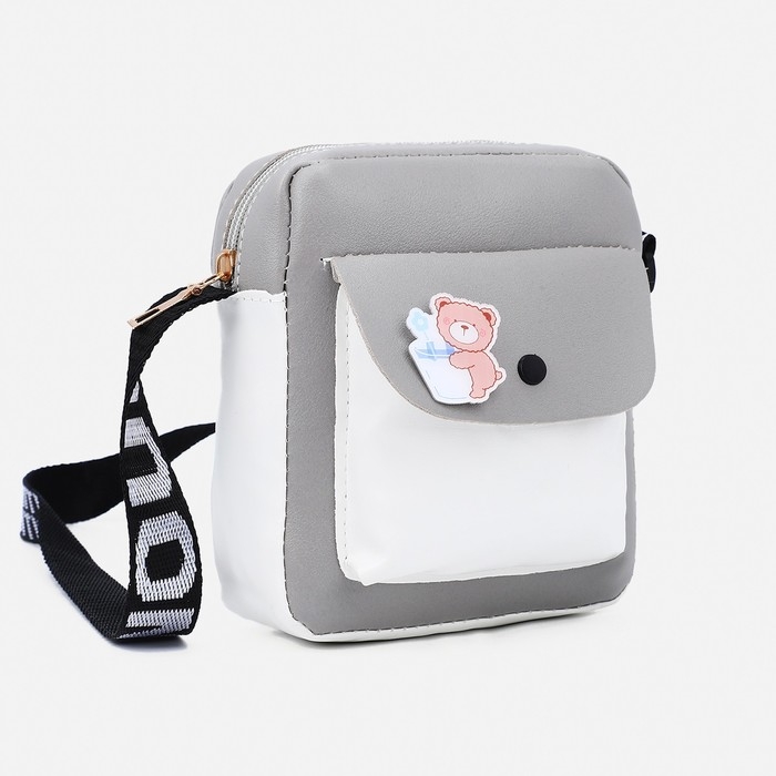 Сумка детская на длинном ремне, наружный карман, цвет серый