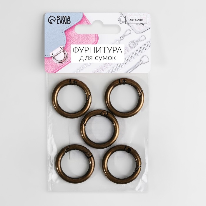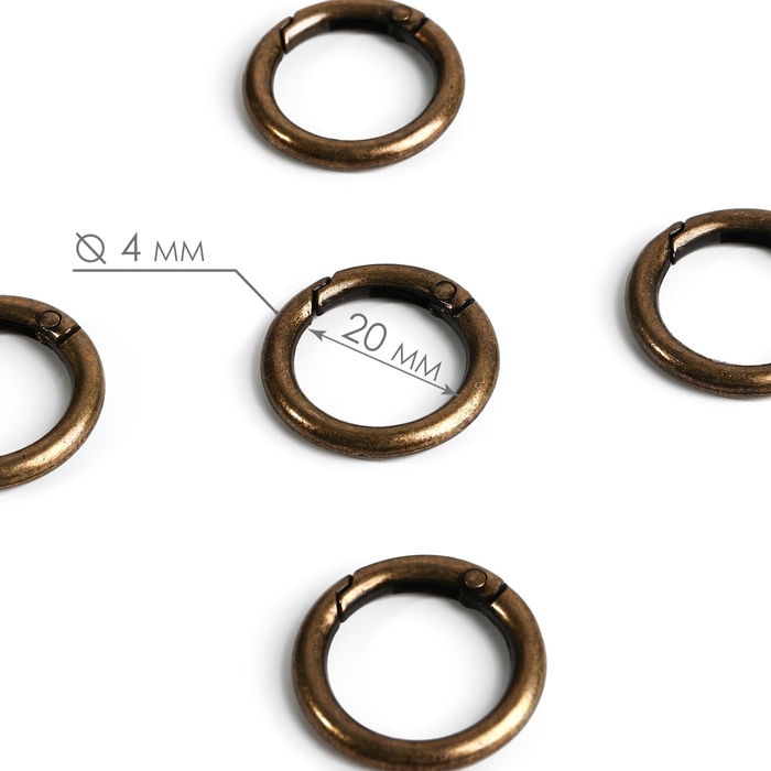Кольцо-карабин, d = 20/28 мм, толщина - 4 мм, 5 шт, цвет бронзовый