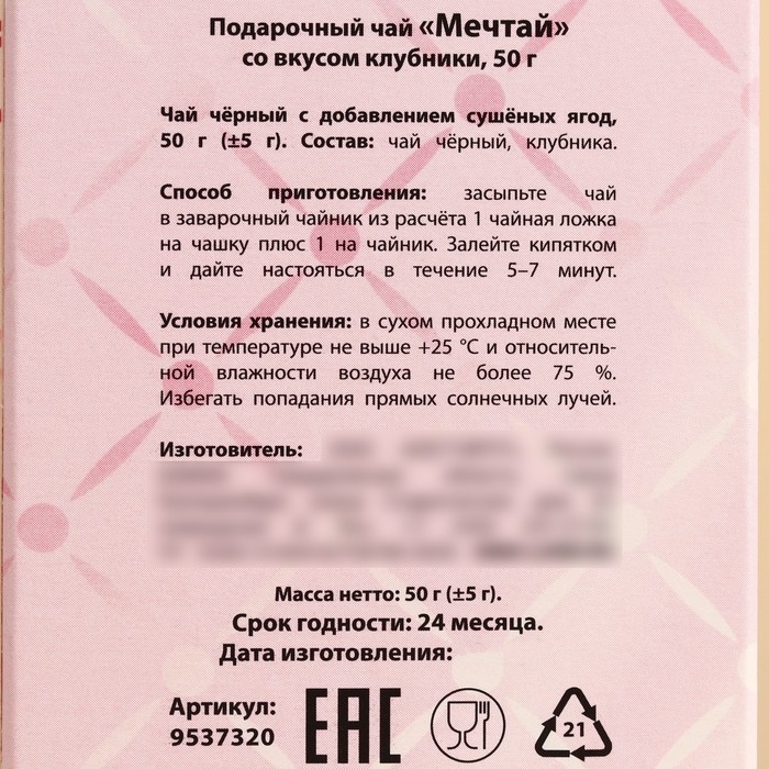 Чай чёрный подарочный «Мечтай», вкус: клубника, 50 г. (18+)