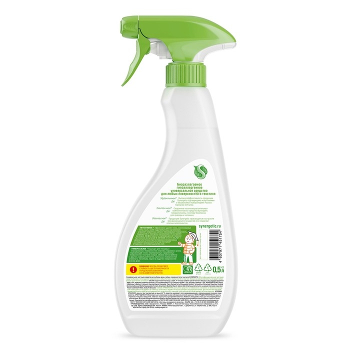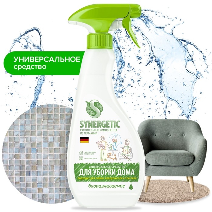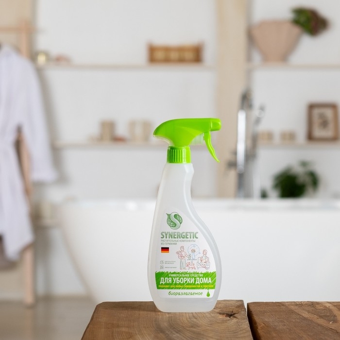 Универсальный биоразлагаемый спрей для уборки SYNERGETIC - это многофункциональное чистящее средство, которое быстро и легко удаляет любые виды бытовых загрязнений: грязь, масложировые пятна, пыль, налет. Эффективно устраняет неприятные запахи и обезжиривает поверхность, защищая ее от повторного загрязнения.