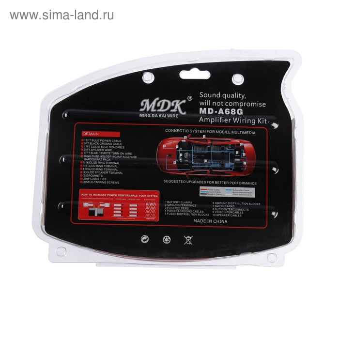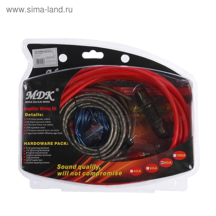Стандартный набор для подключения усилителя. Сечение провода питания 8GA (8.30 мм2).