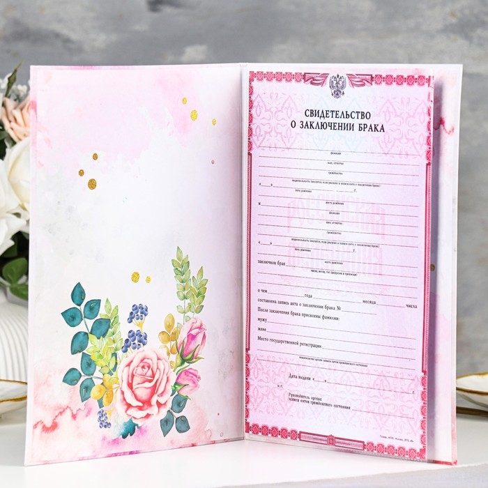 Свидетельство о заключении брака "Цветение" софт тач, тиснение, розы, 31х22,5 см