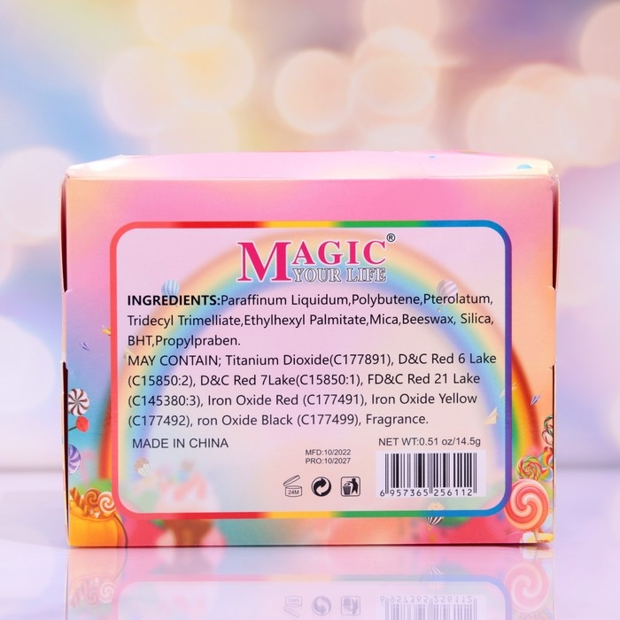 Состав: Жидкий парафин, Полибутен, вазелин, Тридецилтримеллитат, этилгексилпальмитат, Слюда, пчелиный воск, диоксид кремния, БХТ, пропилпарабен. МОЖЕТ СОДЕРЖАТЬ: Диоксид титана Оксид железа красный (C177491), Оксид железа желтый (C177492), оксид железа черный (C177499), Отдушка.
