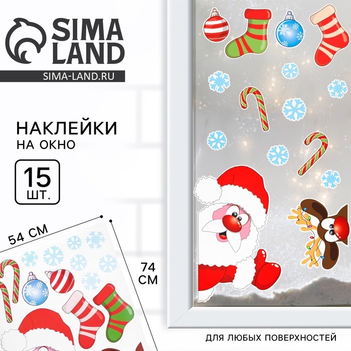 Наклейки на окно новогодние «Новый год: Дед Мороз», 54 х 74 см