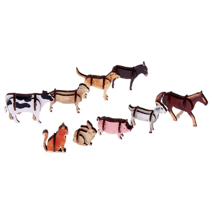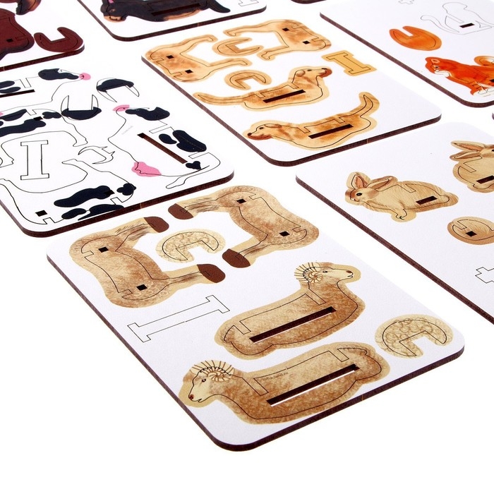 Набор включает в себя разнообразные деревянные детали, которые легко соединяются между собой. Ваш ребенок сможет использовать свою фантазию и создавать уникальные фигурки домашних животных.