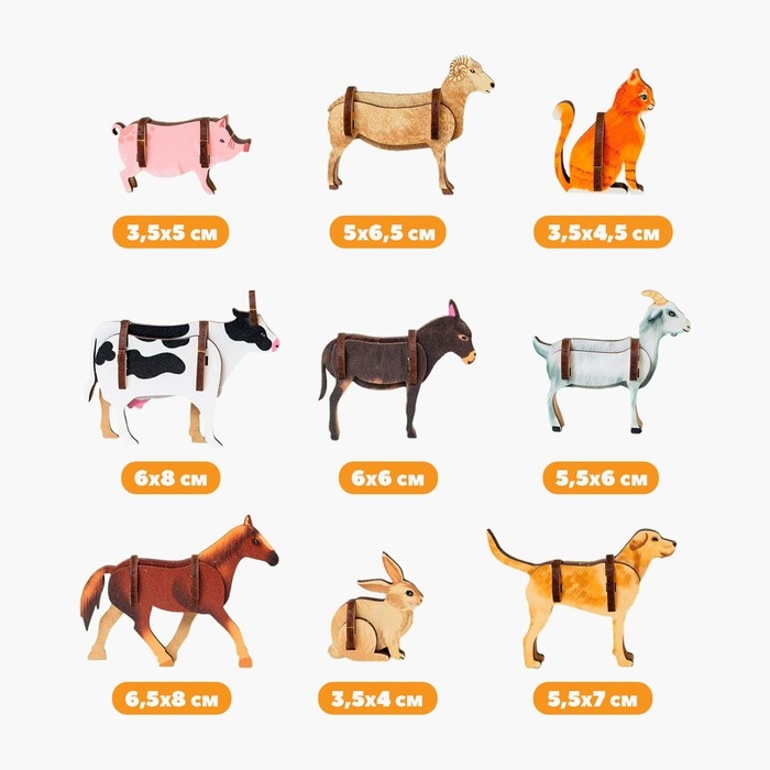 Игровой набор «Ферма» - это деревянный конструктор, который позволит вашим детям собрать фигурки домашних животных и погрузиться в увлекательный мир сельской жизни.