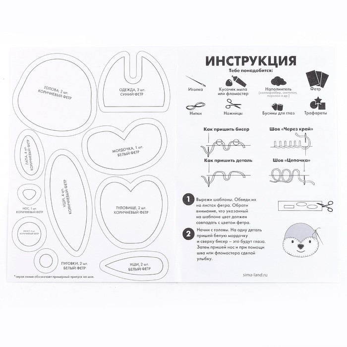 Набор для шитья. Игрушка из фетра своими руками «Зайчик в комбинезоне»