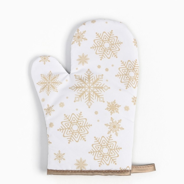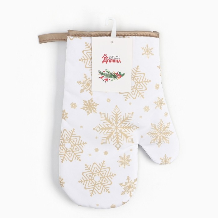 Новый год.Варежка Доляна Снежинки золотые 26*16 см, 100% п/э