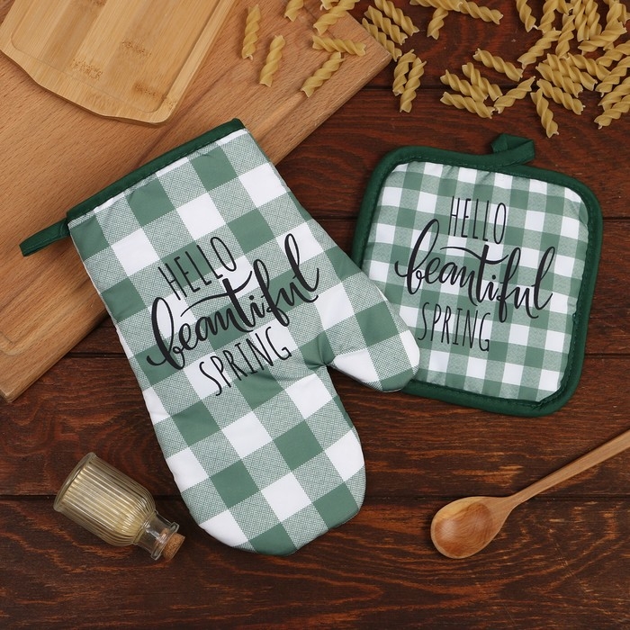 Кухонный набор 2 прихватки Доляна Spring прих. 17*17 см, вареж. 26*16 см,100% п/э