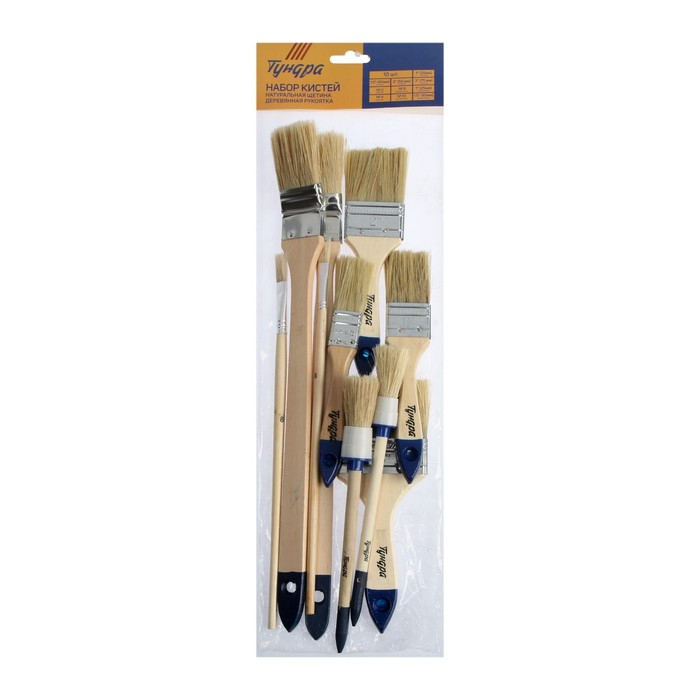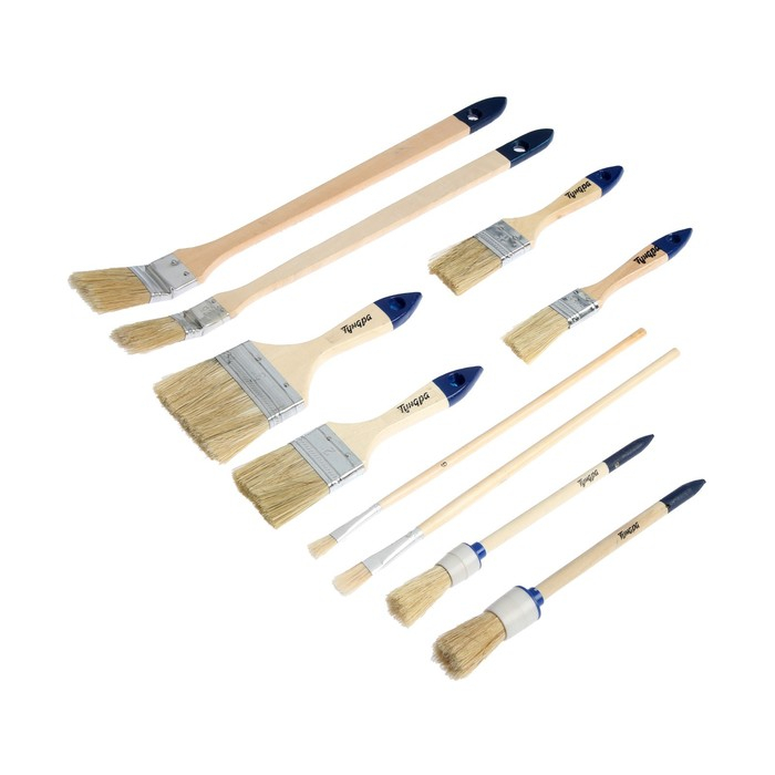 Набор кистей ТУНДРА, плоские, круглые, радиаторные, для масляной краски, 10 шт.