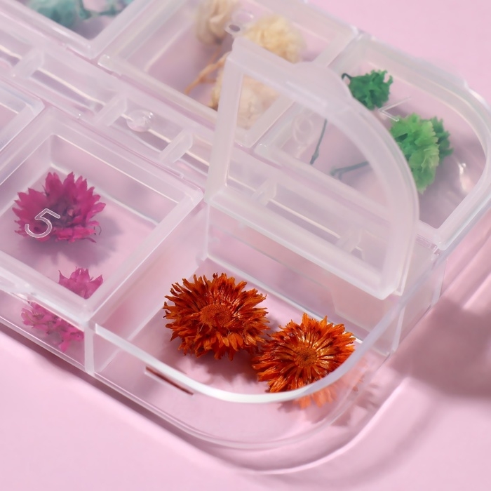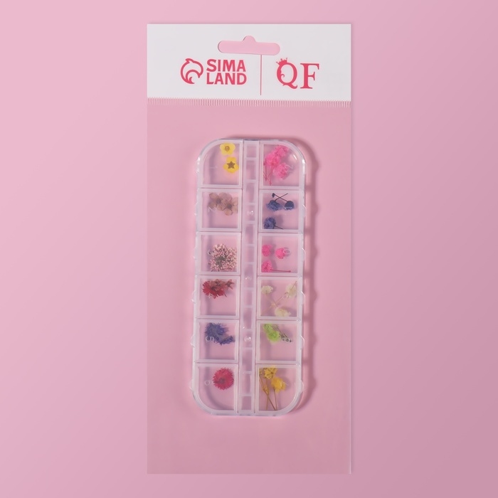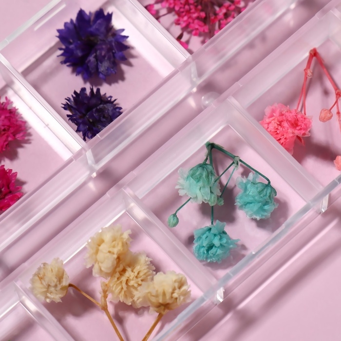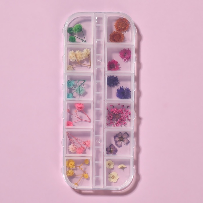 Сухоцветы для декора ногтей «Ассорти», объёмные, 12 видов, в футляре, разноцветные