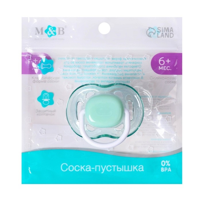 Соска - пустышка силиконовая классическая, от 6 мес., с колпачком, цвет зеленый