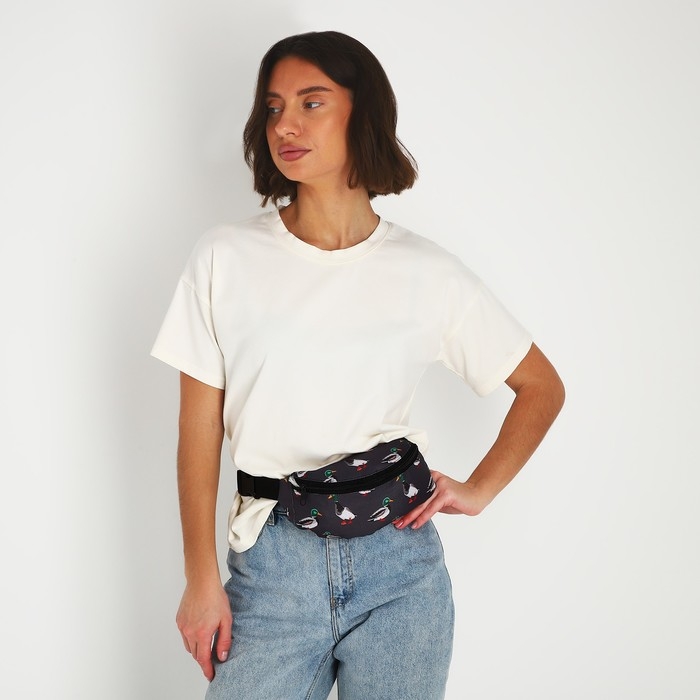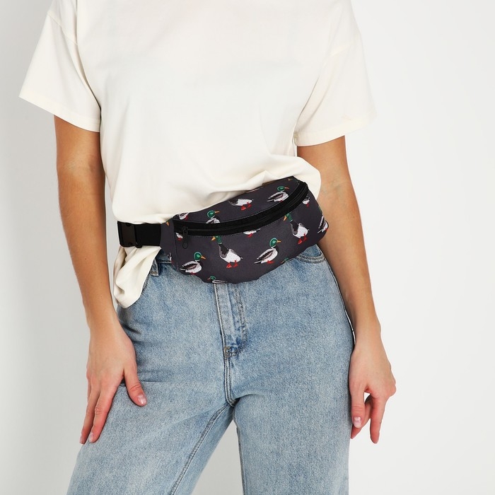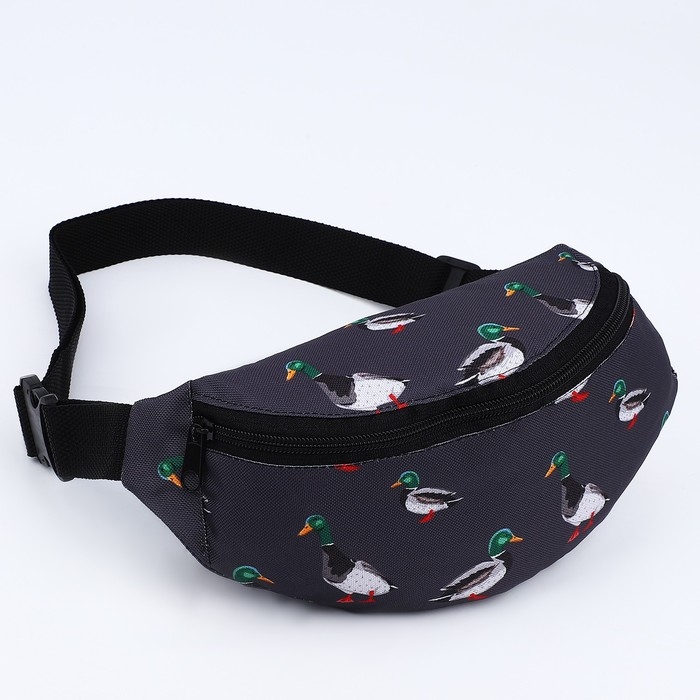 Сумка поясная Утки, 32х8х15 см, отд на молнии, цвет серо-зелёный