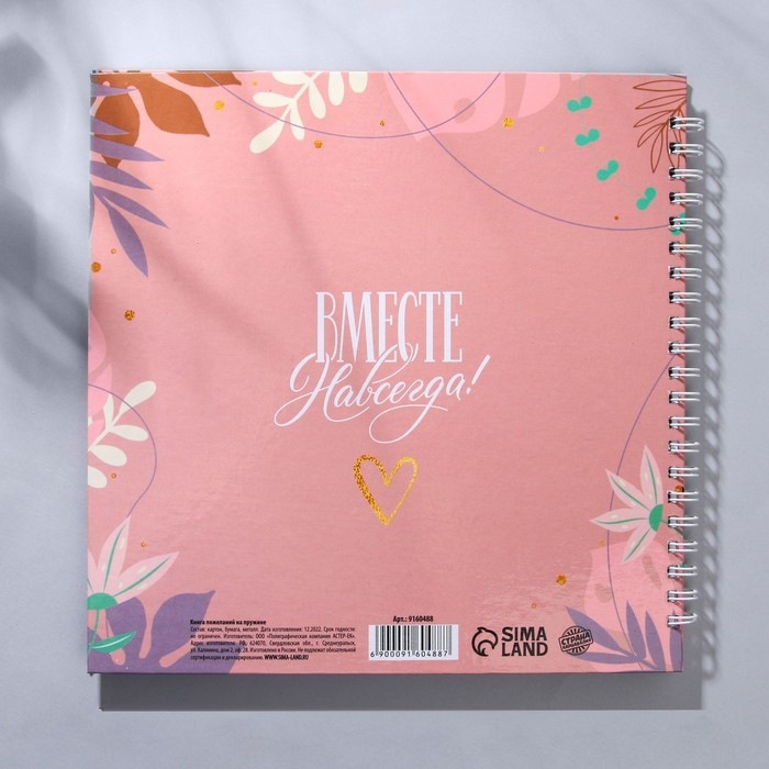 Книга пожеланий на свадьбу, на пружине, 21 х 21 см.