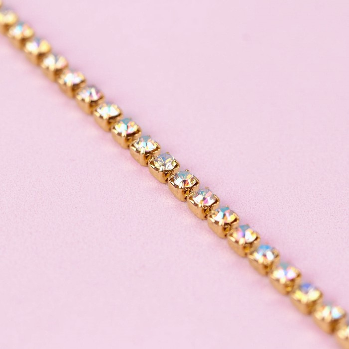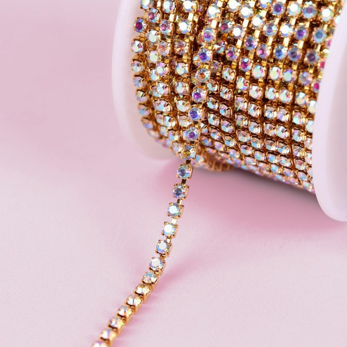 Цепь со стразами, с голографией, металл, стекло, 2 мм, 9 ± 1 м, цвет золотой