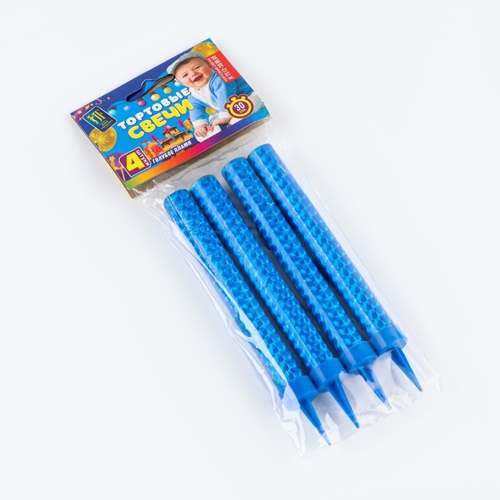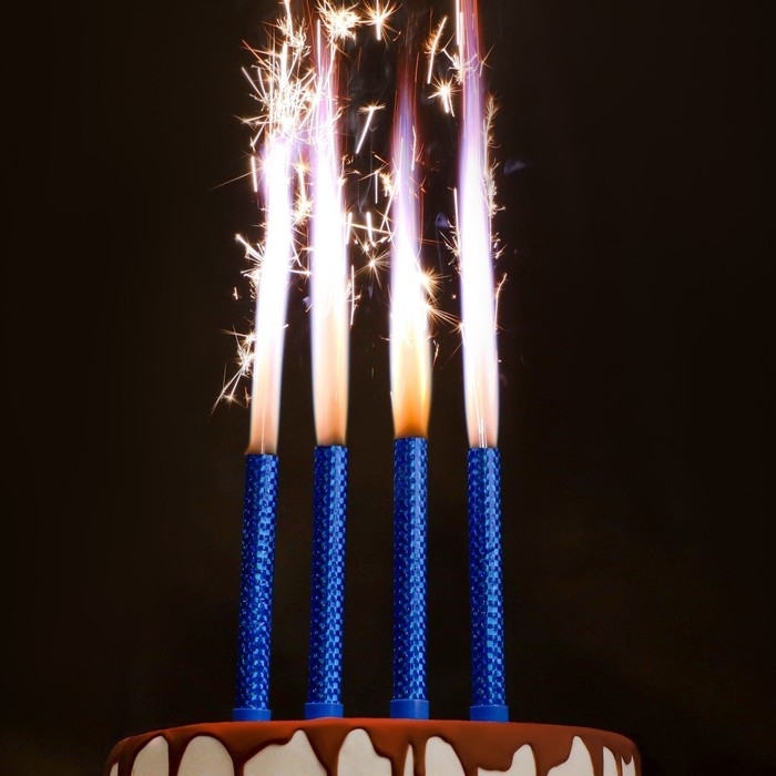 Свечи фонтаны для торта "Голубые искры", 12 см, 30 секунд, голубое пламя, 4 шт