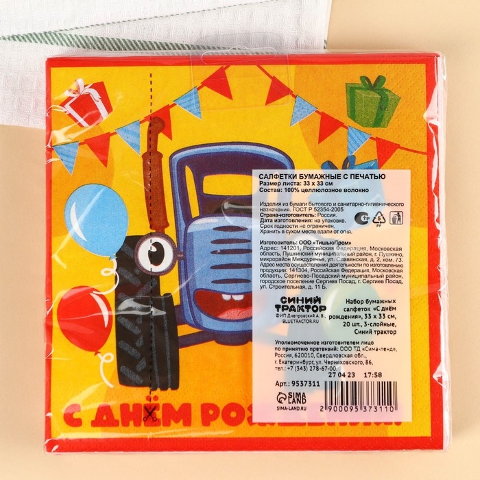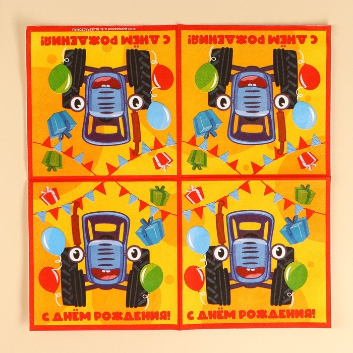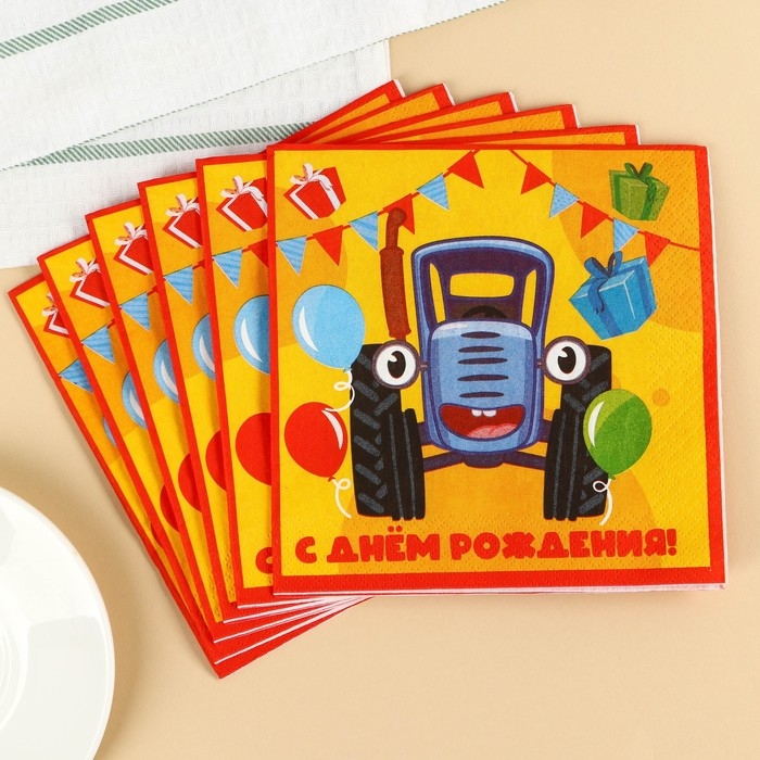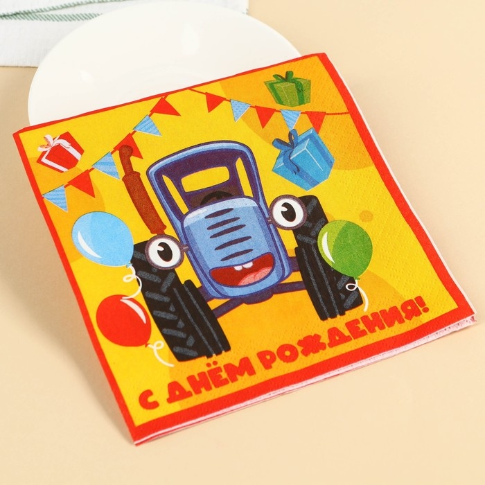 Салфетки бумажные "С днём рождения", 33х33 см, 20 штук, 3-х слойные, Синий трактор