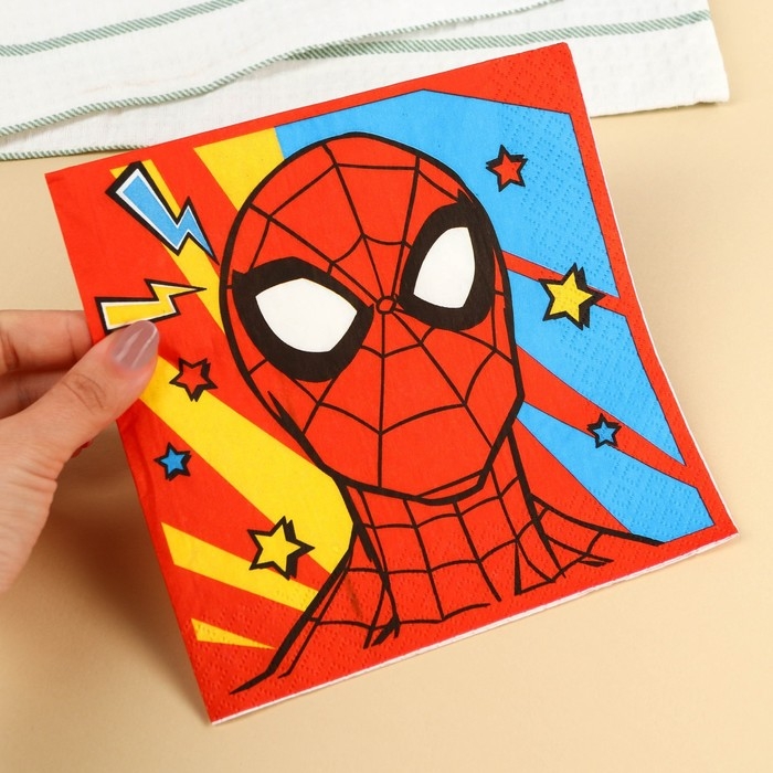 Салфетки бумажные "Супермен", 33х33 см, 20 штук, 3-х слойные, Человек-паук