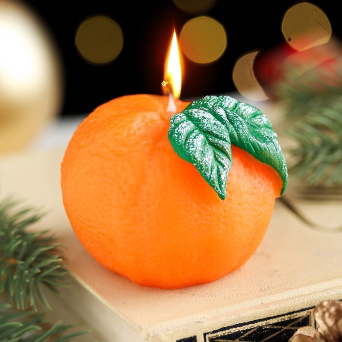 Декоративная свеча "Мандарин с листочком", 6х6х5 см