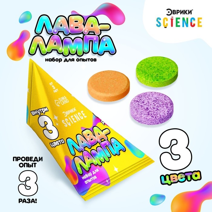 Набор для опытов «Лава-лампа», 3 опыта, 3 цвета