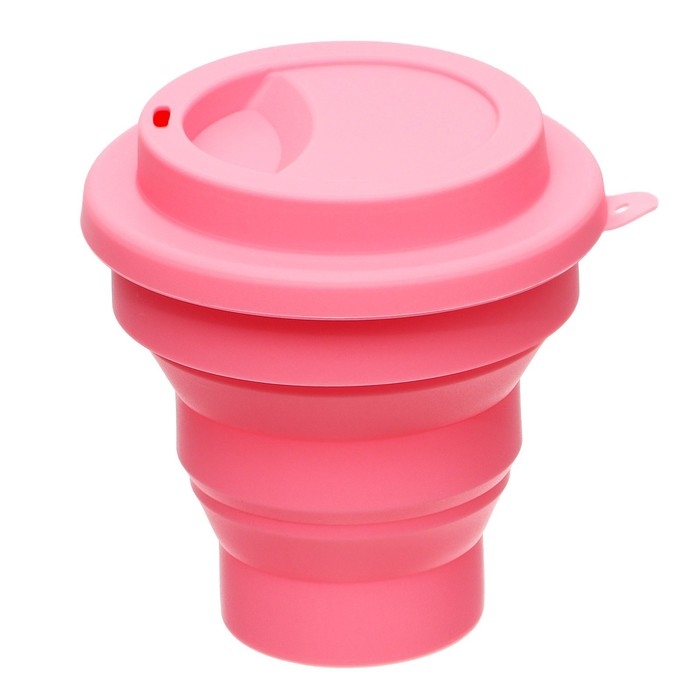 Стакан для ИЗО "deVENTE. School" силиконовый, складной, в собранном виде 80x90x80 мм, в сложенном 80x10x80 мм, с силиконовой крышкой, розовый пастельный.