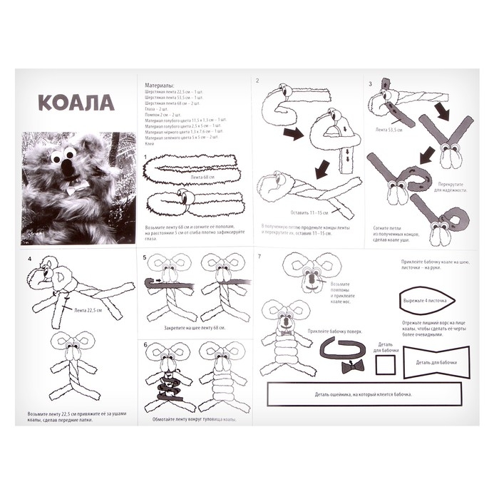 Набор для творчества: создание игрушки из меховых палочек и раскраска «Коала и друзья»