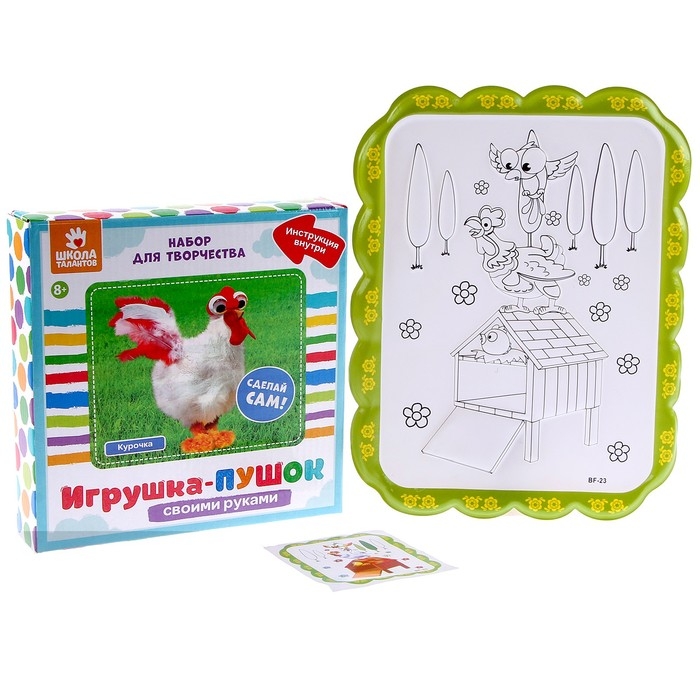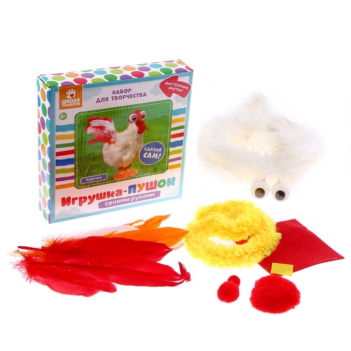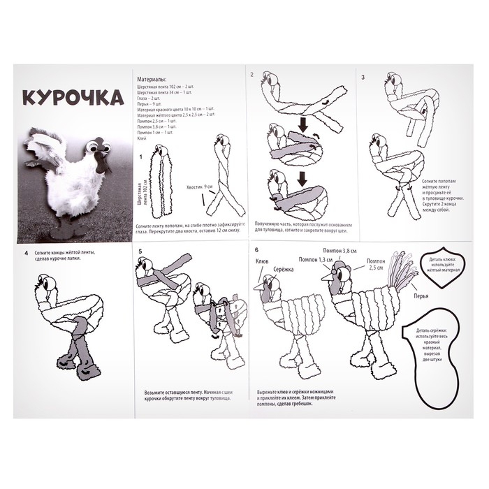 Набор для творчества: создание игрушки из меховых палочек и раскраска «Веселая курочка»