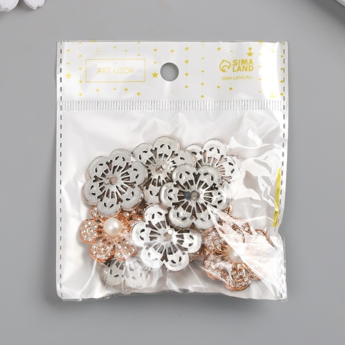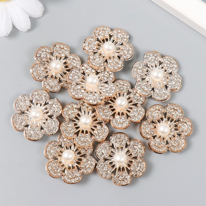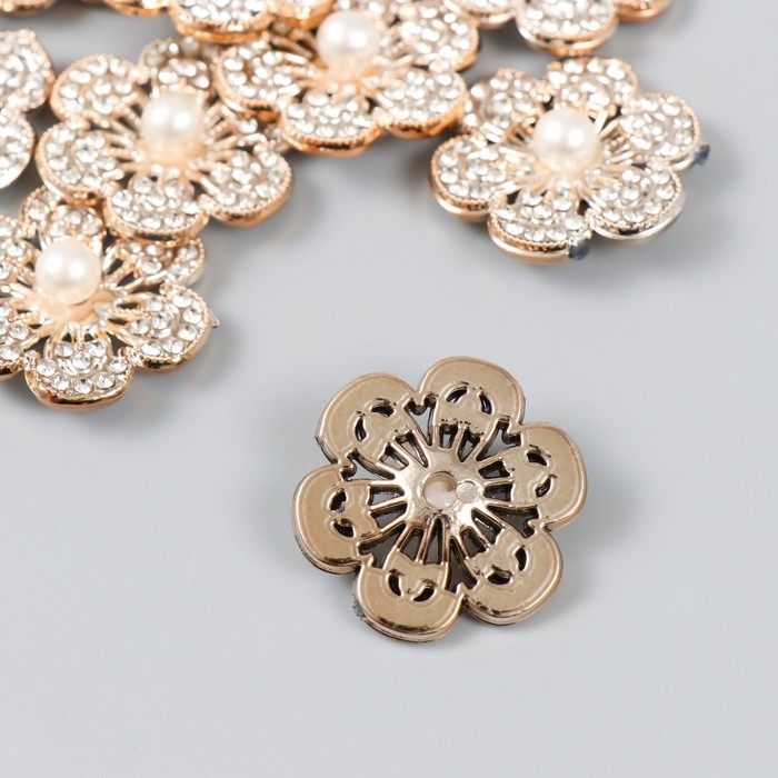 Декор для творчества пластик, стразы "Золотой цветок с бусиной" набор 10 шт 3х3 см
