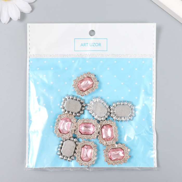 Декор для творчества пластик, стразы "Медальон восьмиугольный" н-р 10 шт розовый 1,8х2,4 см