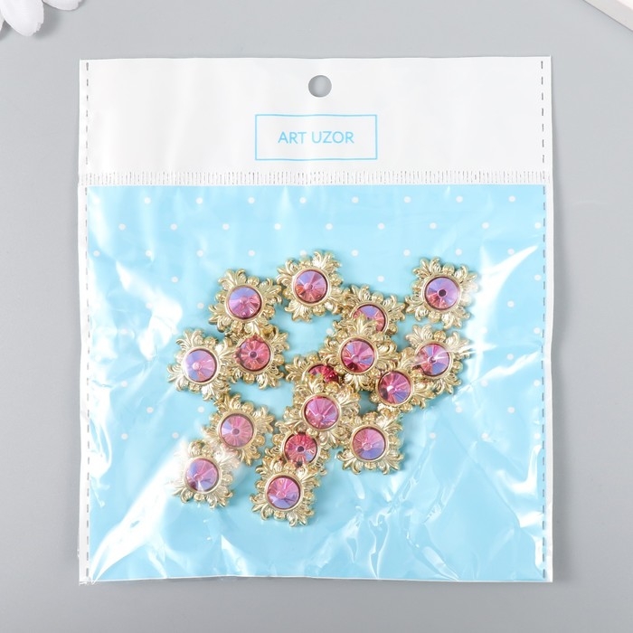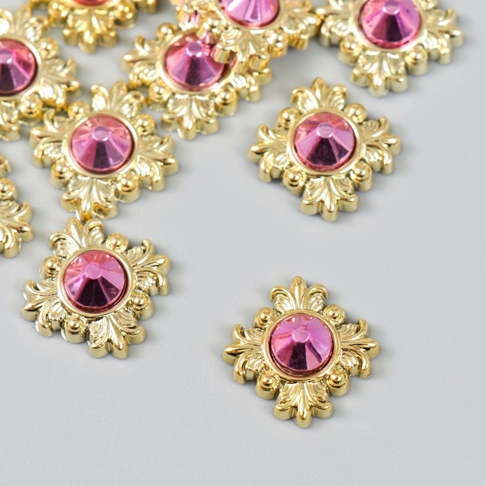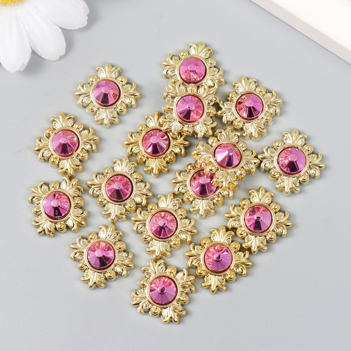 Декор для творчества пластик "Розовый шип в золотых вензелях" набор 16 шт 2х2 см