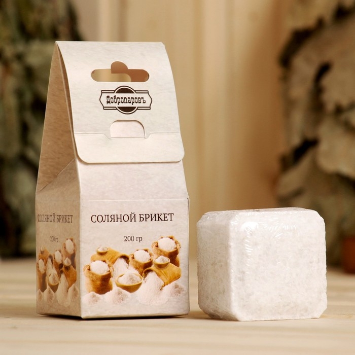Соляной брикет куб "Кедр" 200 г "Добропаровъ"